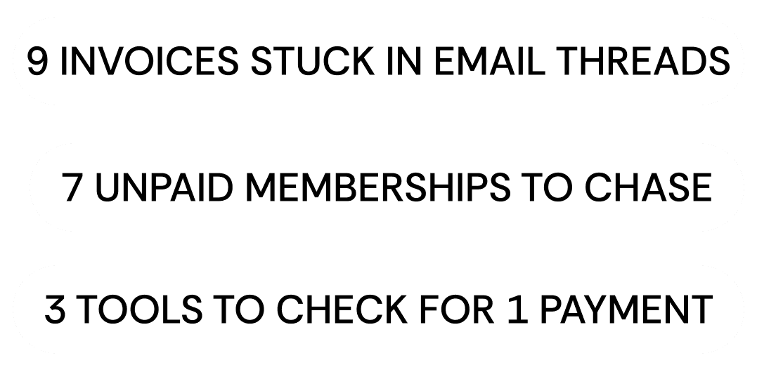 Manual invoicing: Membership renewals and event fees were managed through spreadsheets and emails.